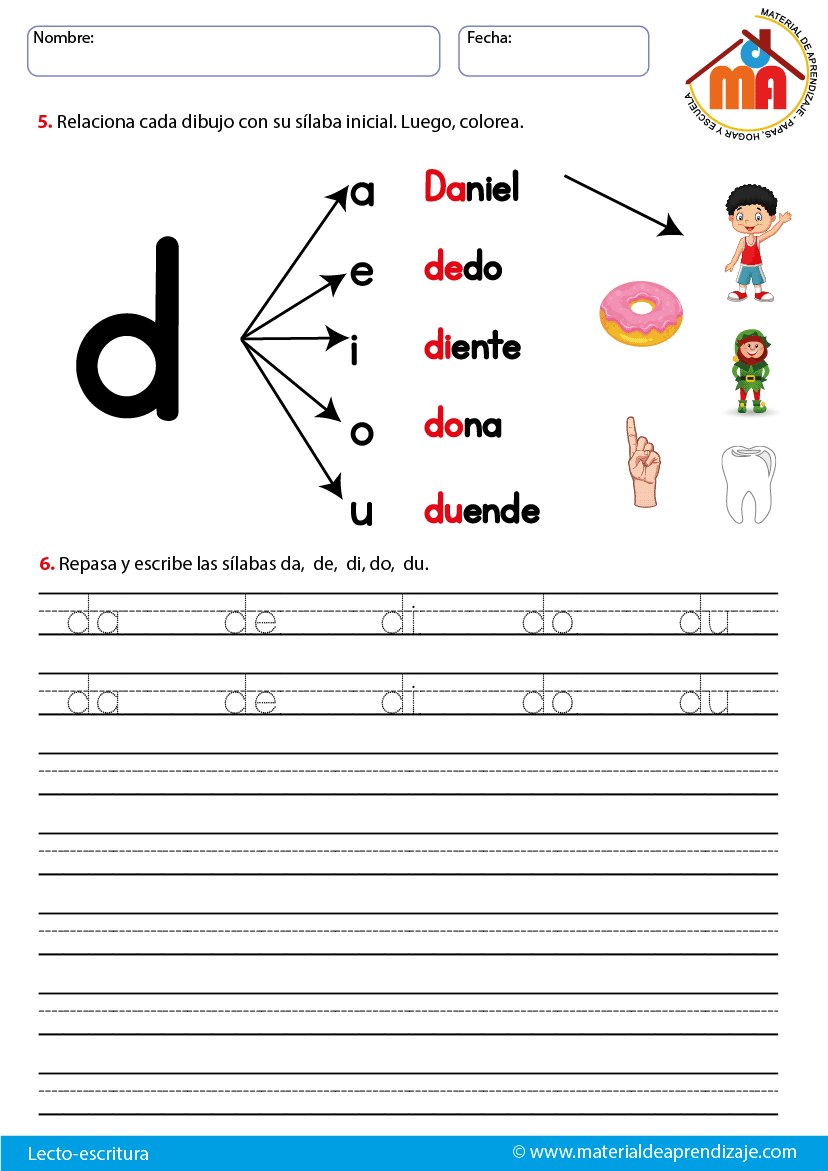 Silabas Con La Letra D Da De Di Do Du Hojas De Trabajo