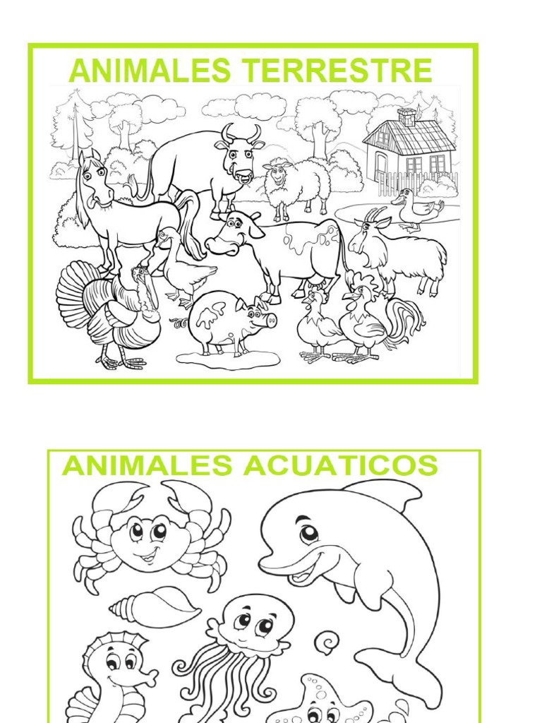 Dibujos Para Colorear De Animales Acuaticos Terrestres Y Aereos