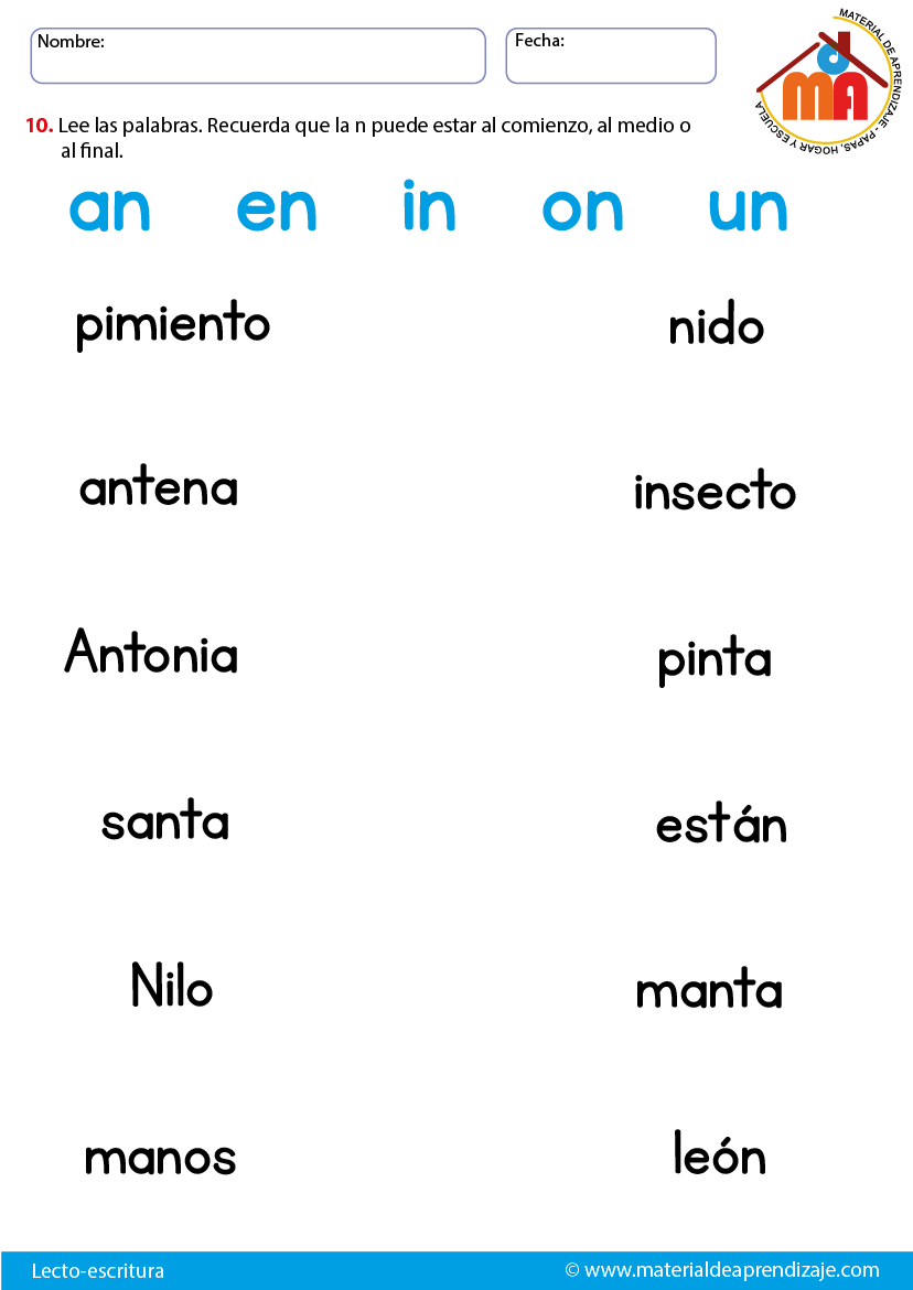 Ejercicios Para Aprender A Leer Primeras Palabras N Q El Blog